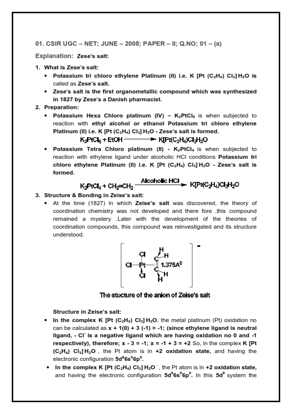 CSIR UGC – NET; JUNE – 2008; PAPER – II; CHEMICAL SCIENCES SOLUTIONS